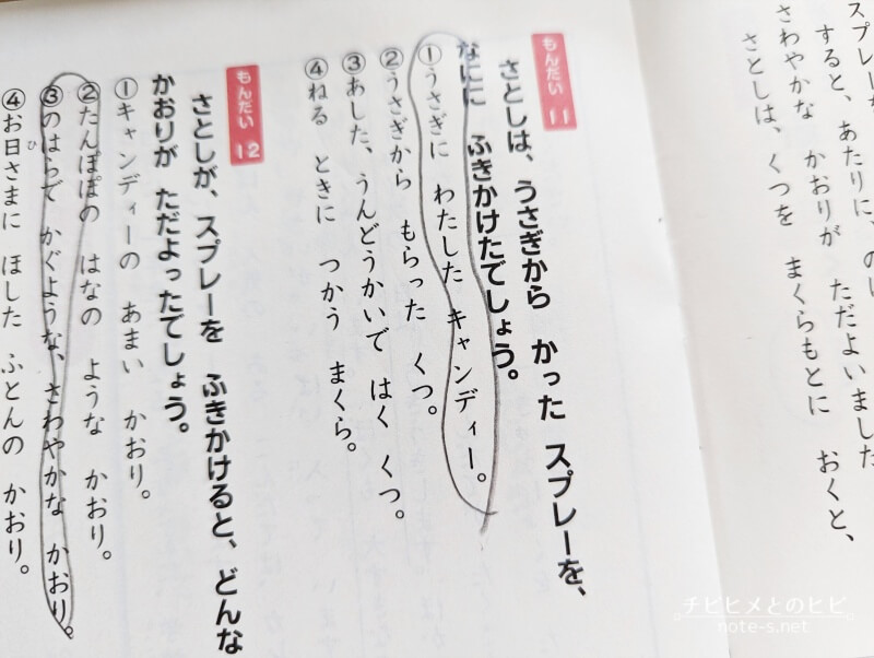 今回は、問題用紙自体に正しいと思う番号に丸をつけて解くように教えました。